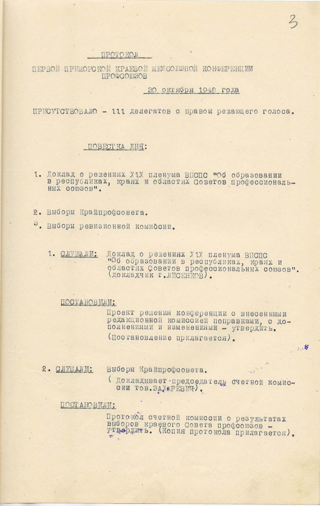 Первая Приморская краевая межсоюзная конференция профсоюзов, проходила с 6 по 28 октября 1948 г., на которой был создан Приморский краевой Совет Профессиональных Союзов.