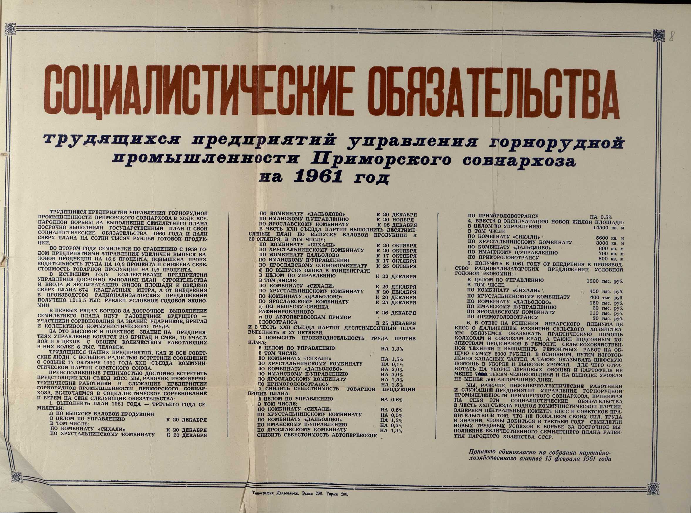 Масштабность работы профсоюзов края, можно представить если обратиться к перечню документов, переданных Крайсовпрофом на хранение в архив.