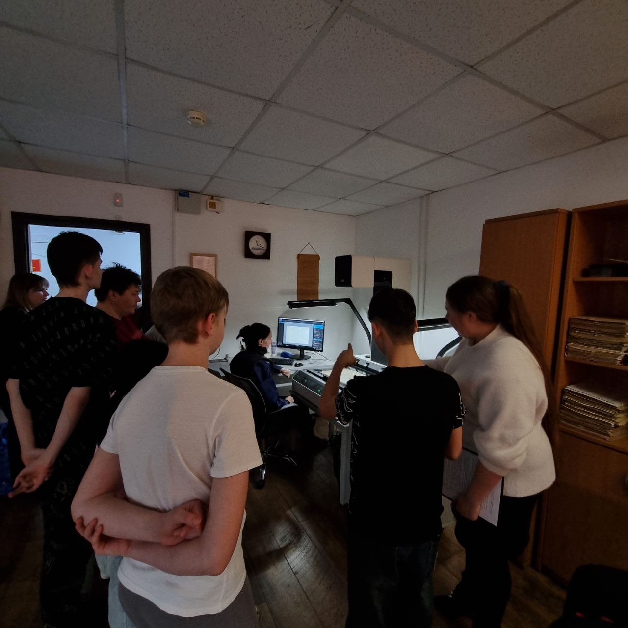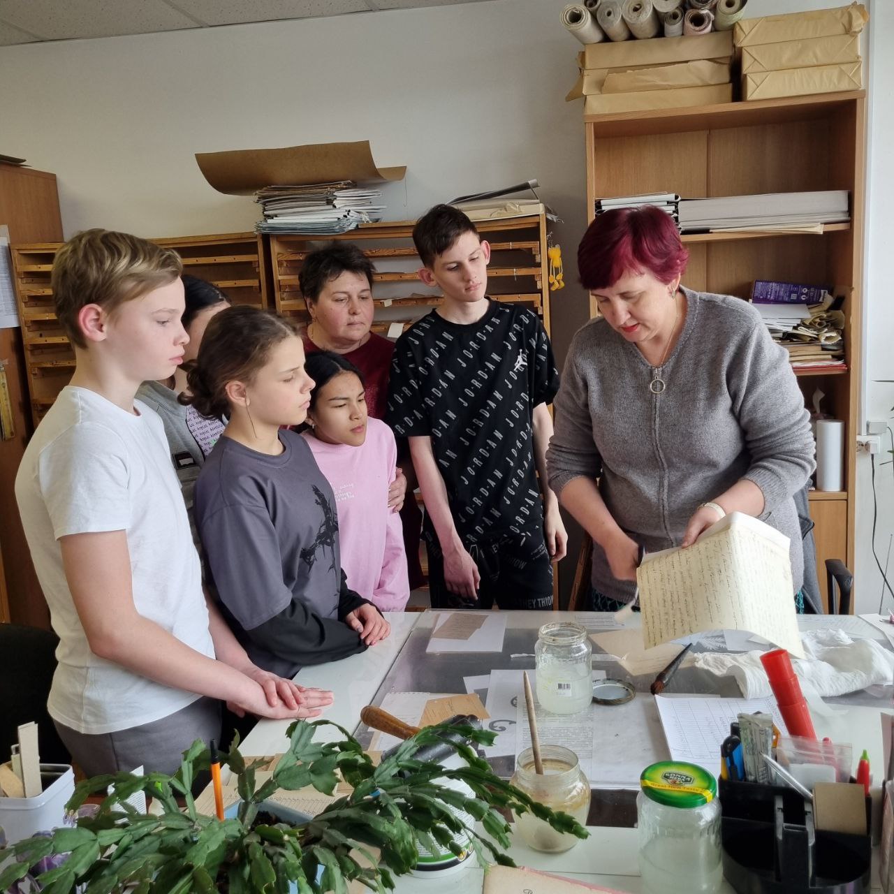 В ходе экскурсии сотрудники архива представили школьникам обзор деятельности учреждения: познакомили с принципами работы архивохранилищ и читального зала, провели в реставрационную лабораторию и отдел оцифровки.